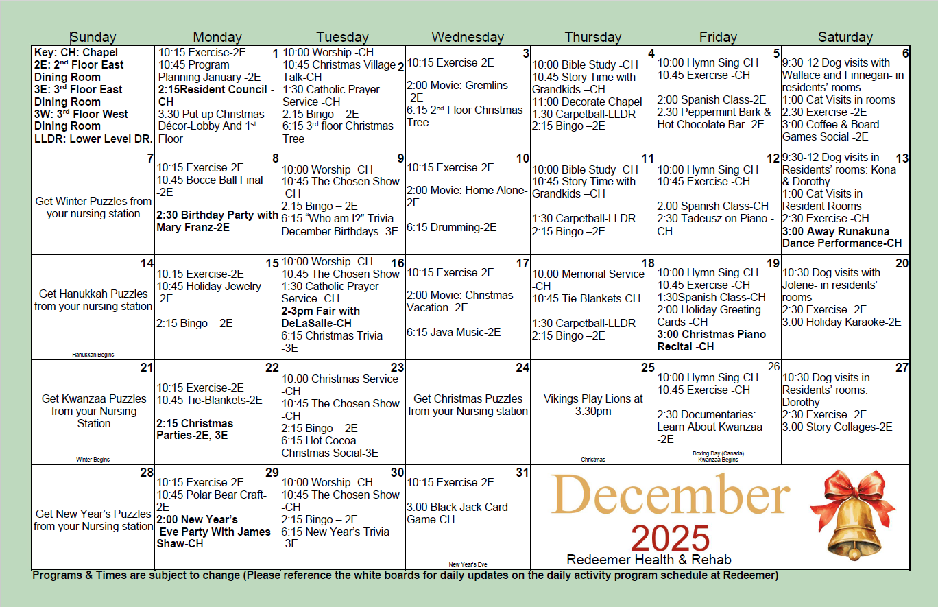 …at Redeemer Health Care Center, where you’ll enjoy engaging activities, delicious meals, good conversation and the friendship of neighbors.